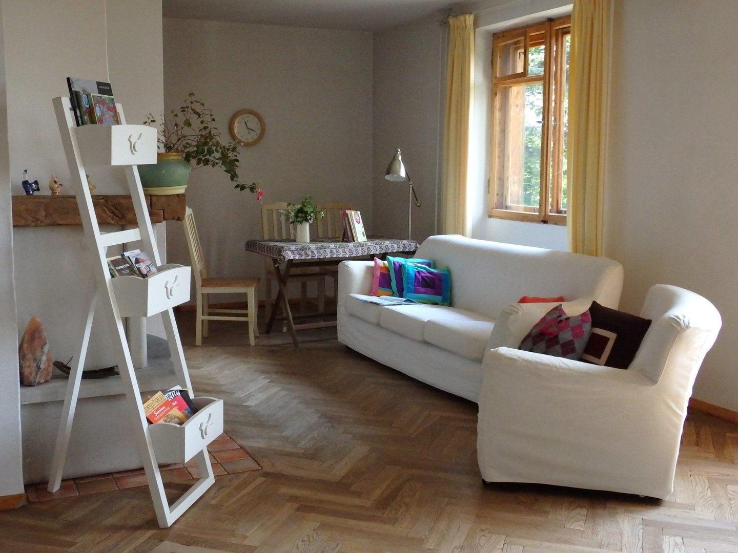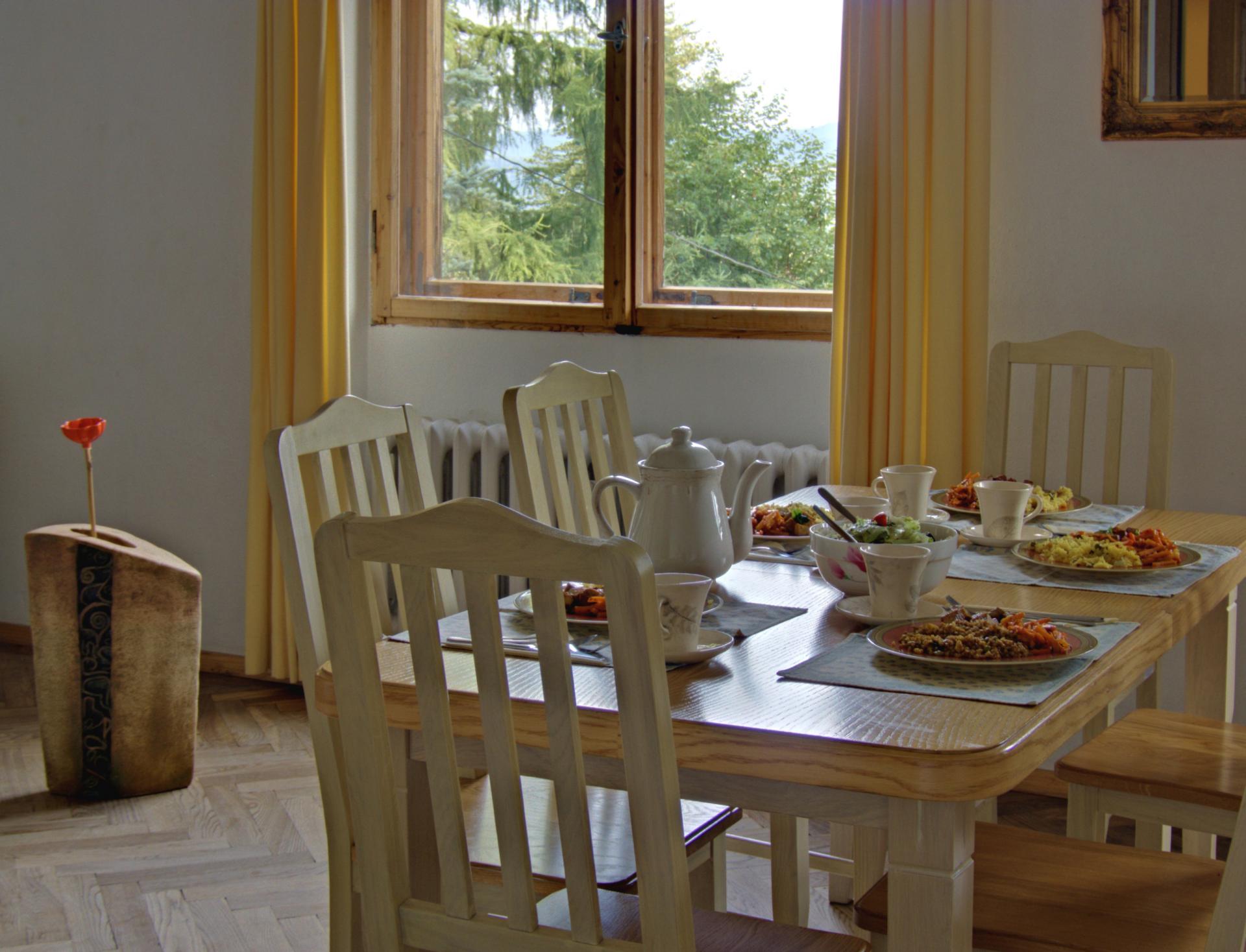 Pokój na piętrze z podwójnym łóżkiem, wspólne łazienki na piętrze. Możliwość korzystania z przestronnego salonu, kuchni i ogrodu.